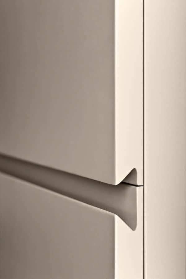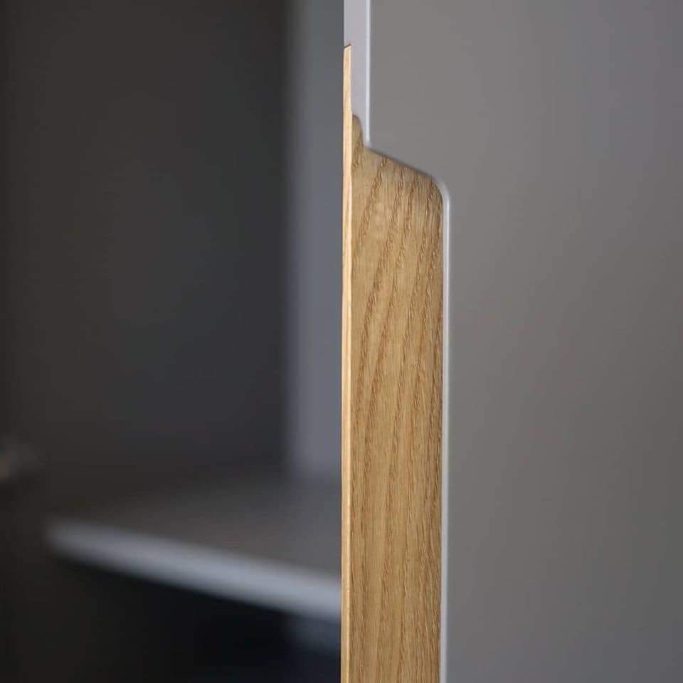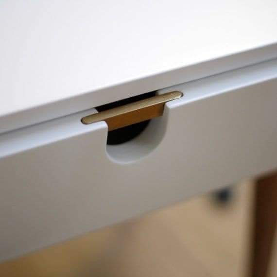 Mẫu tay nắm này được khá nhiều nhà thiết kế và khách hàng ưa chuộng. Ưu điểm là có thể dụng ở mọi vị trí của cạnh tủ, vì được thiết kế âm nên tránh những trường hợp va chạm hoặc vướng vào so với các tay nắm thông thường.
