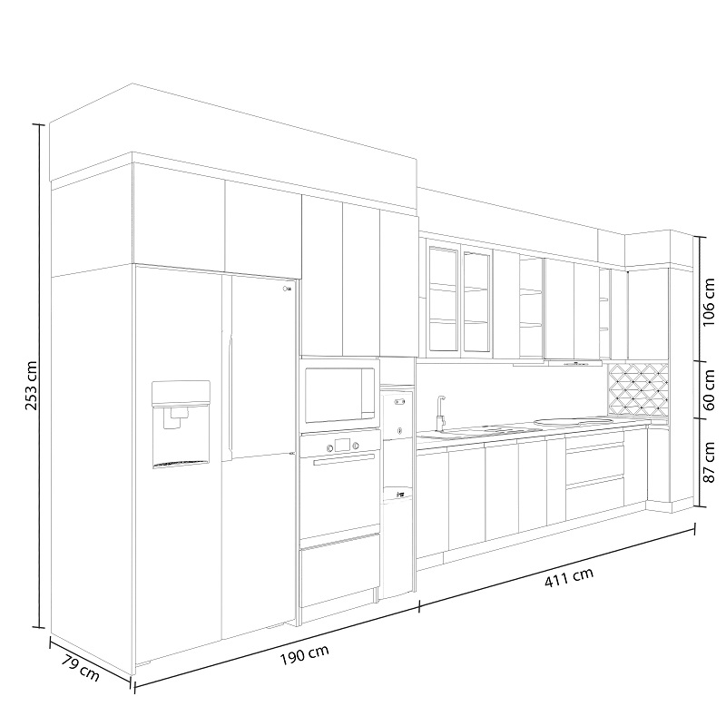 | Kích thước bếp dưới | - Dài: 4330 mm - Rộng: 600 mm - Cao: 870 mm |